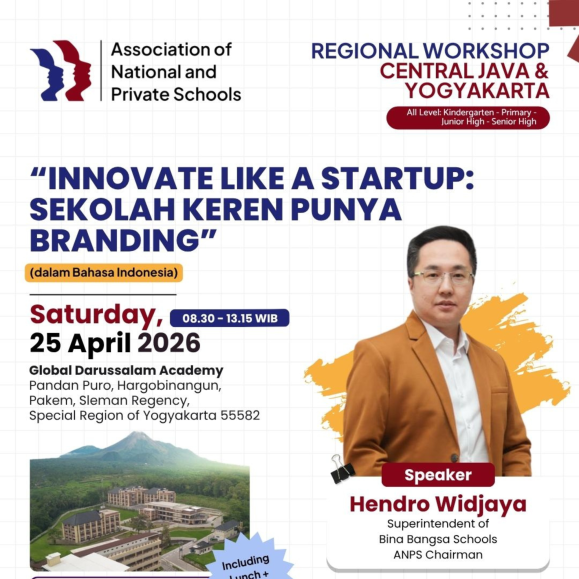 📣 Yth Para Pimpinan Sekolah, School Admissions & Marketing Team, & Seluruh Pendidik di Yogyakarta & Jawa Tengah, Bergabunglah bersama kami dalam ANPS Regional Workshop Yogyakarta April 2026 🌟 Berinovasi layaknya startup berarti sekolah harus bergerak cepat, beradaptasi, dan berani...